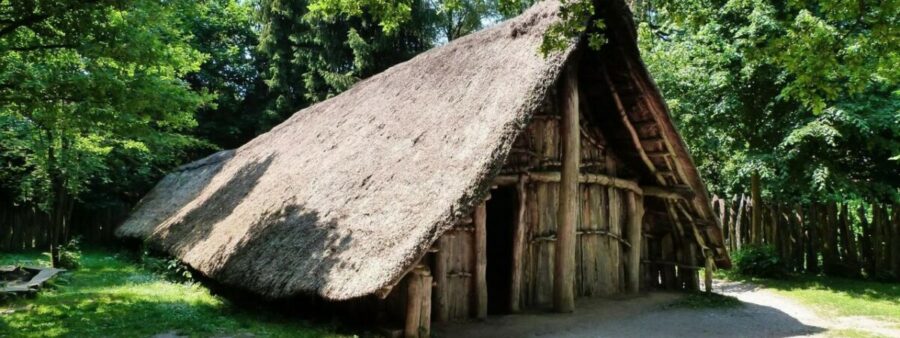 Und hier haben wir die Rekonstruktion eines jungsteinzeitlichen Langhauses des „Archäologisches Freilichtmuseum Oerlinghausen“: