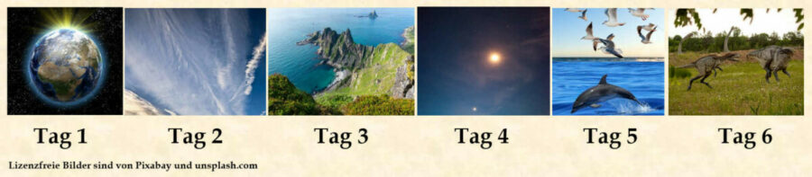 Die Bibel lehr klar und deutlich, dass Gott die Erde mit allen Lebewesen, den Pflanzen, dem Menschen und den Gestirnen in sechs Tagen schuf.