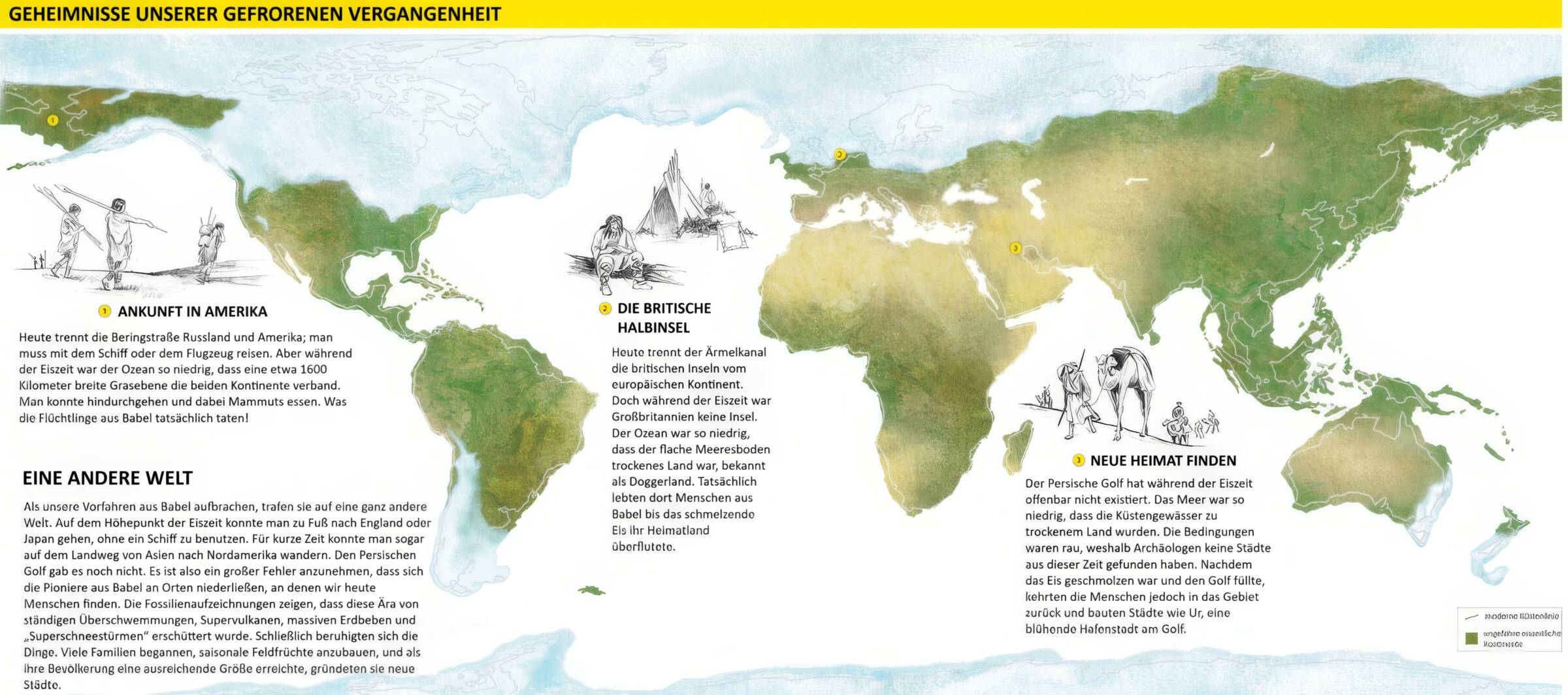 Wie auf der nachfolgenden Karte dargestellt, konnten sich die Menschen auf diese Weise wie folgt über die Erde verteilen: