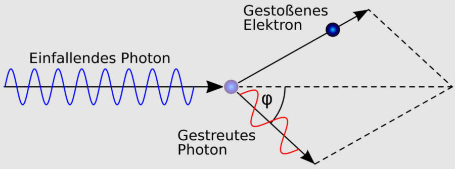 Das einfachste Experiment um das zu beweisen, ist der Compton-Effekt (siehe untere Grafik).