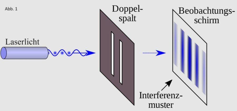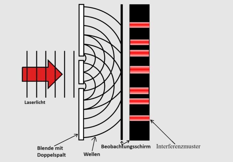 Dieses Licht schicken wir durch einen Doppelspalt und es entsteht ein Muster das Interferenzmuster genannt wird.
