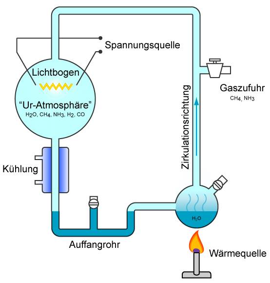 1953 gab es ein Experiment von Miller das zeigen sollte, dass die Bausteine des Lebens, wie Aminosäuren, unter den Bedingungen entstehen konnten, wie bei einer auf Annahmen beruhenden frühen Erdatmosphäre, etliche Millionen Jahre nach dem Urknall als das Leben noch am Entstehen war.